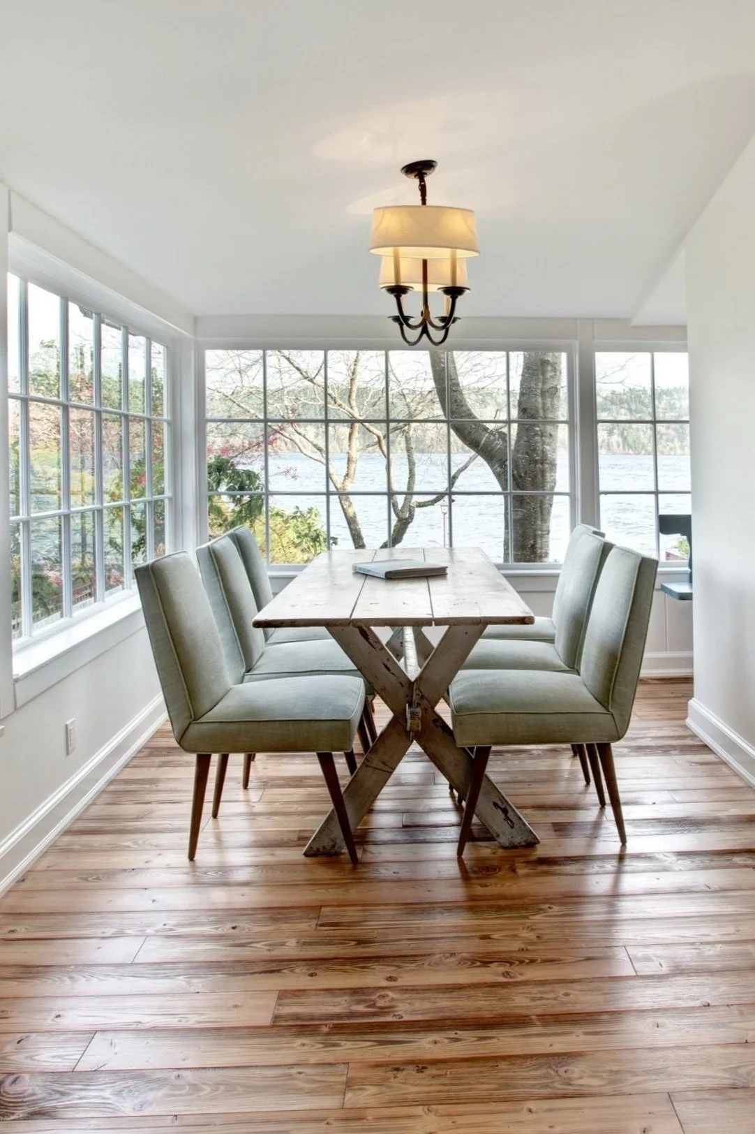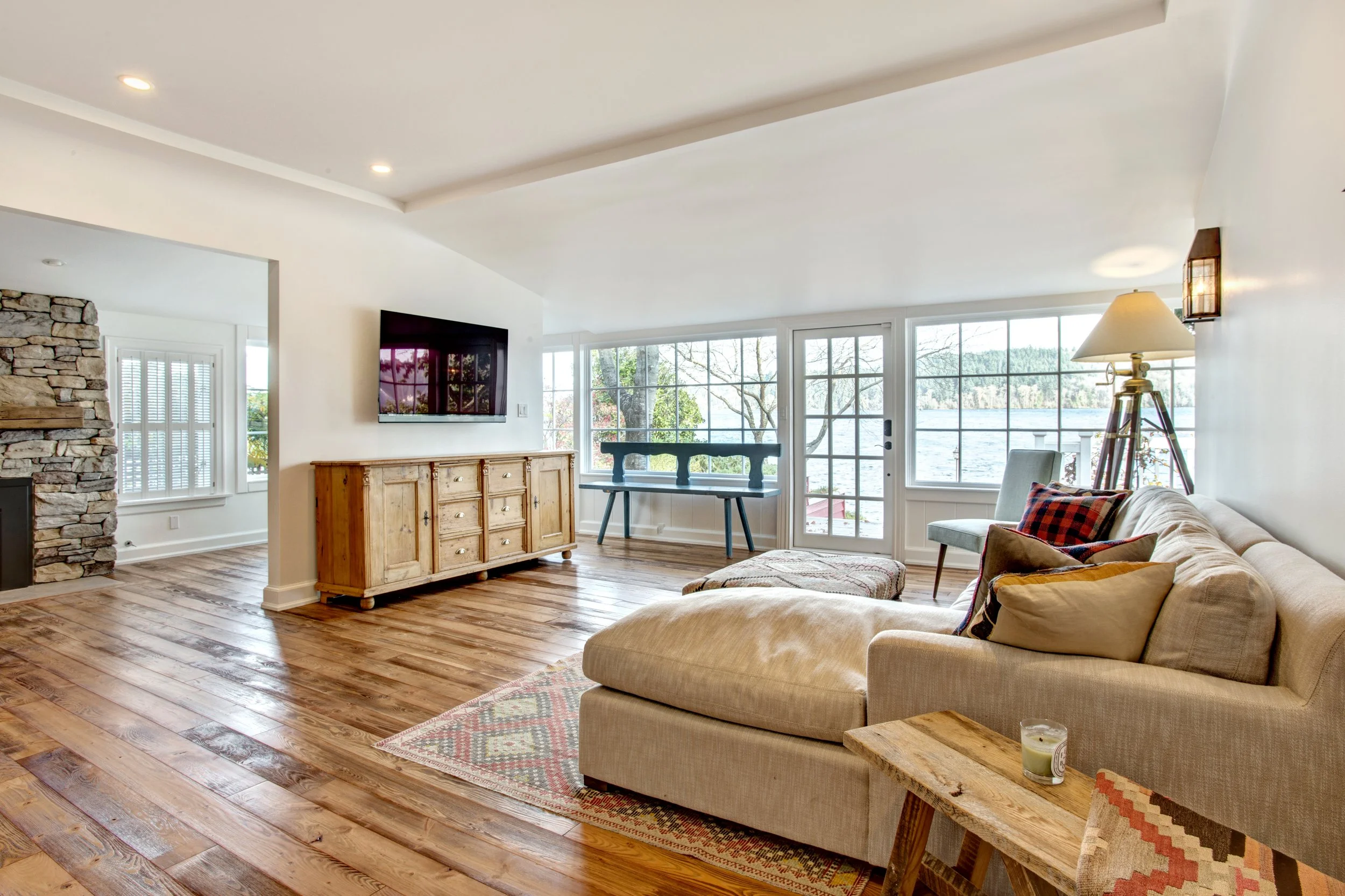 The current owners envisioned turning the Frankensteined house – originally a fishing cabin – into a proper lakeside retreat. To frame lake views and let in more natural light, we opened walls and added windows. Dormers were installed to create a clubhouse-style sleeping area for the grandkids. And the lakefront side of the property was re-landscaped with native plants in a more naturally inspired design.